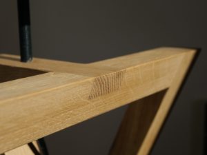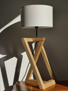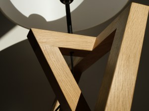 Lampe aux angles surprenants en chêne massif ciré.